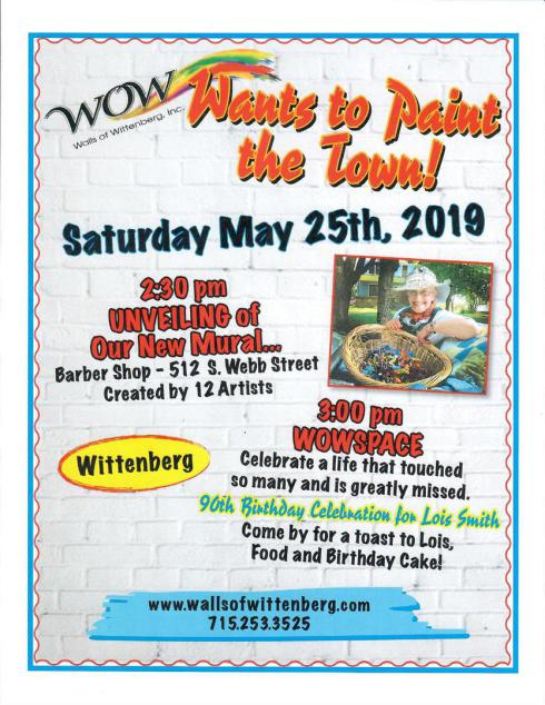 Saturday, May 25, 2019 90th Birthday Celebration of Lois Smith-A celebration of her life and her contributions to our community. Over 100 people met at the Barber Shop at 2:30 p.m. for the unveiling of our newest mural and then headed over to the WOWSPACE at 3 p.m. for refreshments.