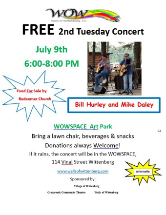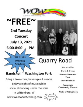 Thursday, July 16, 2020 (rescheduled due to weather) ~ 6-8 PM Wittenberg Band Shell