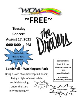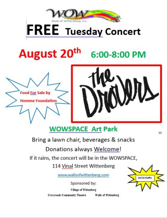 Tuesday, August 18, 2020 ~ 6-8 PM Wittenberg Band Shell