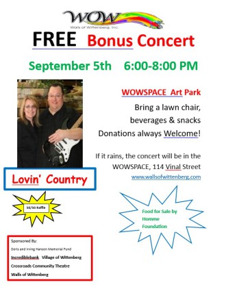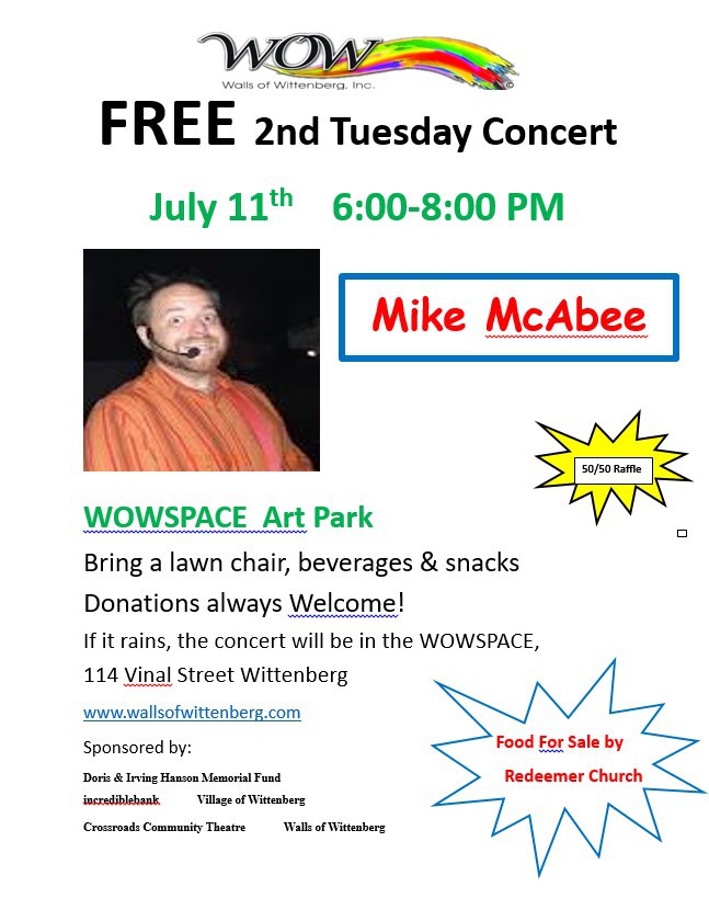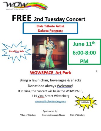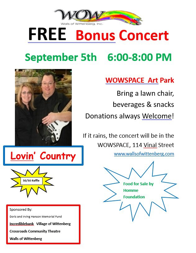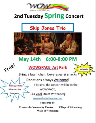 The Third Thursday Concert series is funded by donations from the Doris and Irving Hanson Memorial Fund, the Wittenberg Lions Club and the Wittenberg Chamber of Commerce.