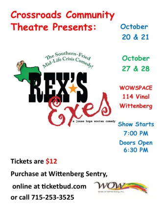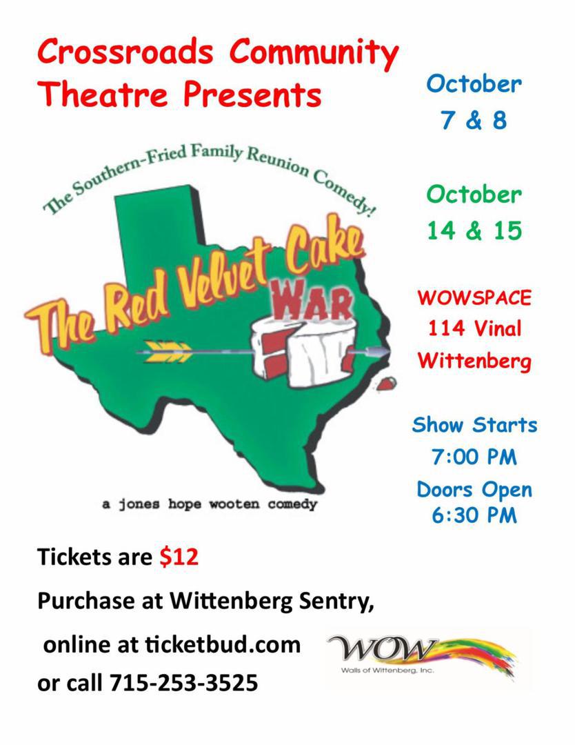 October 12th, 13th, 19th and 20th, 2018 ~ 7:00 p.m. the Crossroads Community Theartre presented "Love Thy Neighbor" and I believe you could hear the audience laughing in Shawano! It was well attended and enjoyed by many.