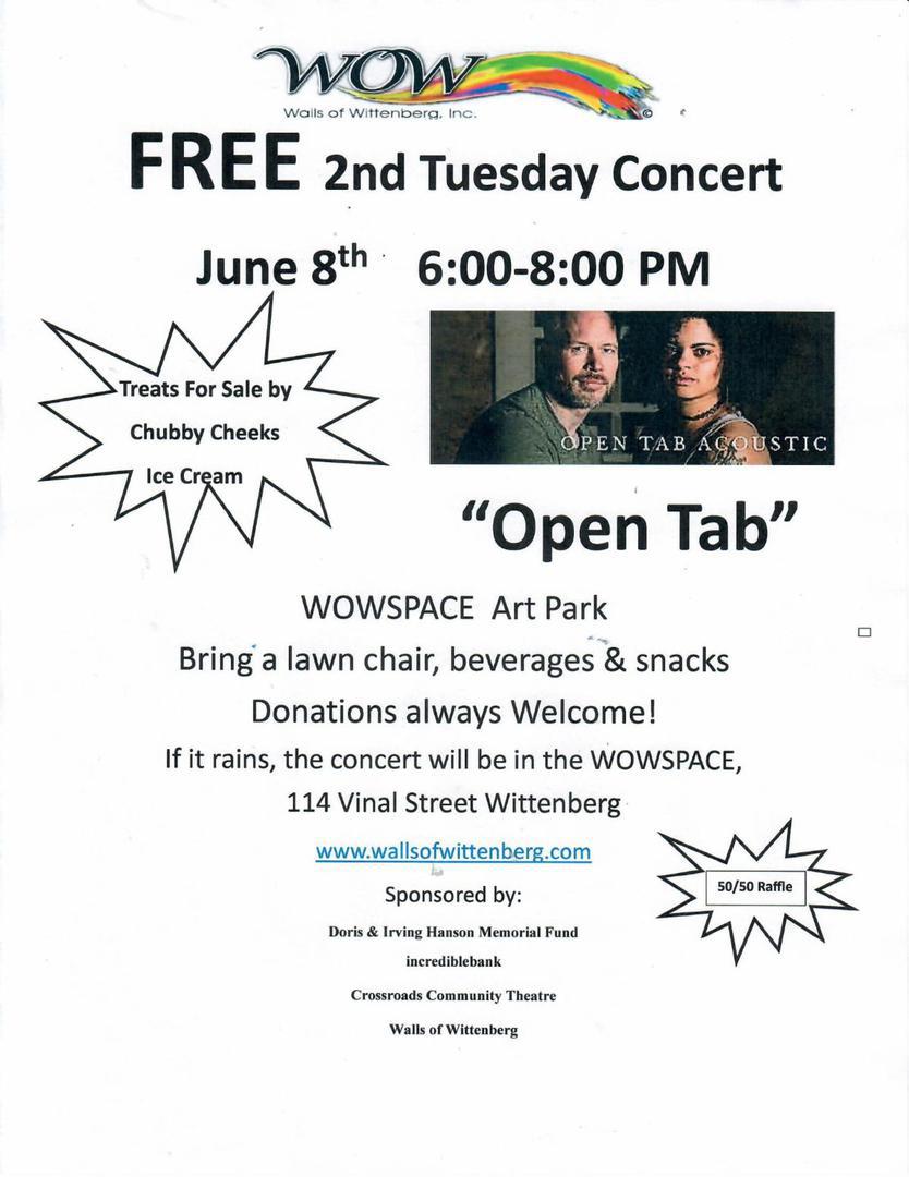 Second Tuesday Concerts 6-8 p.m. WOW Art Park