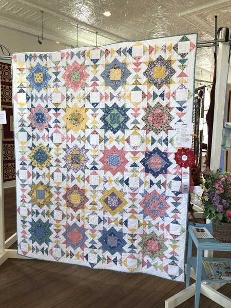 3rd place was awarded to Gloria Kohn of Birnamwood, Wisconsin for her quilt titled Tumbling Stars which she refers to as a "Someday Quilt" for her oldest granddaughter, who will receive it either as a wedding gift or housewarming gift for her first house.