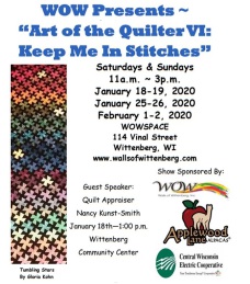 Quilters, thank you for participating in our 8th open quilt show at the WOWSPACE in Wittenberg, WI. This was a non-juried, non-judged show.
