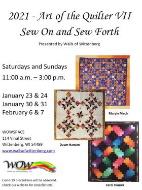 January 14th - January 29th, 2017 "Home Grown, Home Sewn" The quilt show returned in 2017! WOW sponsored a unique quilt and wall hanging show in January, featuring quilters from the greater Wittenberg area. These local quilters were enthusiastic about sharing their skills and passion for their quilted masterpieces in the artistry of design, creativity, color, and detailed sewing perfection. Twelve local quilters participated in this show, exhibiting over 40 quilts and wall hangings. A special “Thank you” to Dar Borchardt, Mary Beth Koeppel, and Margie Mech for helping plan and implement the success of this show.