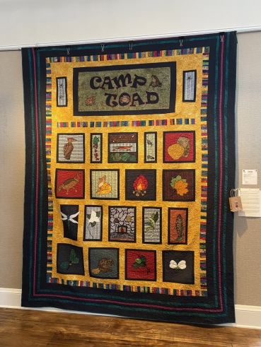 2nd place was awarded to Victoria Reigel of Birnamwood, WI for Friendship, Memories and Hope (Camp Toad). Her quilt commemorates the life and love of her husband and gives praise to how women often bless the lives of other women.