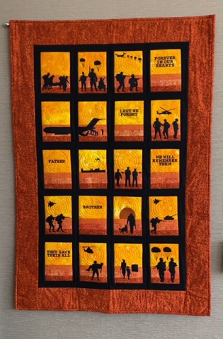 2nd place was awarded to Dar Ryba-Borchardt of Wittenberg, WI for Cost of Freedom. Depicting a variety of scenes in the life of our soldiers, Dar beautifully pays honor to our veterans and the fallen of the Vietnam War through the use of machine embroidery.