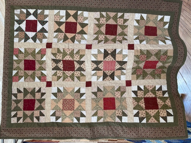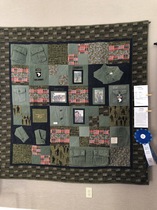 1st place went to Debra Court of Black Creek, Wisconsin for Memories of Vietnam. This quilt was made from old army uniforms worn by her husband, Robert, during his basic training and service in Vietnam. This quilt will one day be passed down to her two sons.