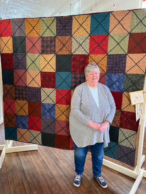 3 People’s Choice Awards were presented based on the approximately 180 votes cast by visitors to the show. Visitors were asked to cast their ballot for the quilt which appealed to them most. First Place People’s Choice went to Bernice Hamilton of Pelican Lake for Memories of Friends. This sampler quilt includes 70 different blocks and is intricately quilted by Debbie Weber. Second Place People’s Choice was awarded to Dar Borchardt of Wittenberg for her quilt titled Mom’s Quilt. Cross-stitched blocks completed by Dar’s mother, Lucille Ryba, were machine pieced and hand quilted by Dar. Third Place People’s Choice went to Babette Zehren of Wausau for Cross-Country Skier. This quilt incorporates cross-country ski race t-shirts, applique and American Birkebeiner/Kortelopet ski race bibs and truly honors her husband’s 37 years of fun and hard work as a skier. Her quilt was machine quilted by Jan Meachen.